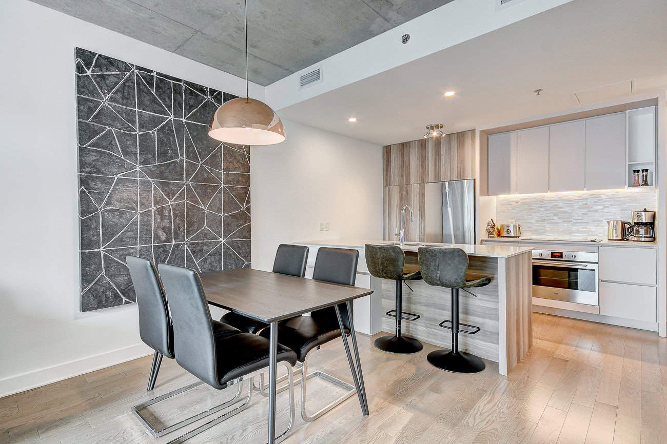 Au condo du Quartier, dès votre arrivée, vous vous sentirez chez vous. Grands espaces, plafonds hauts, lumière naturelle et vue magnifique sur la ville. Profitez également de la cuisine équipée avec comptoir-bar et du balcon privé.