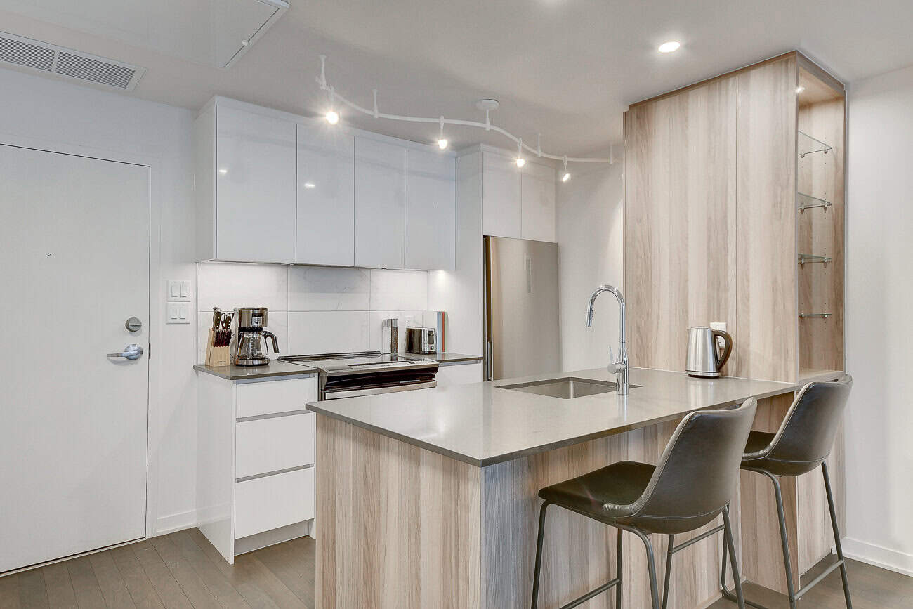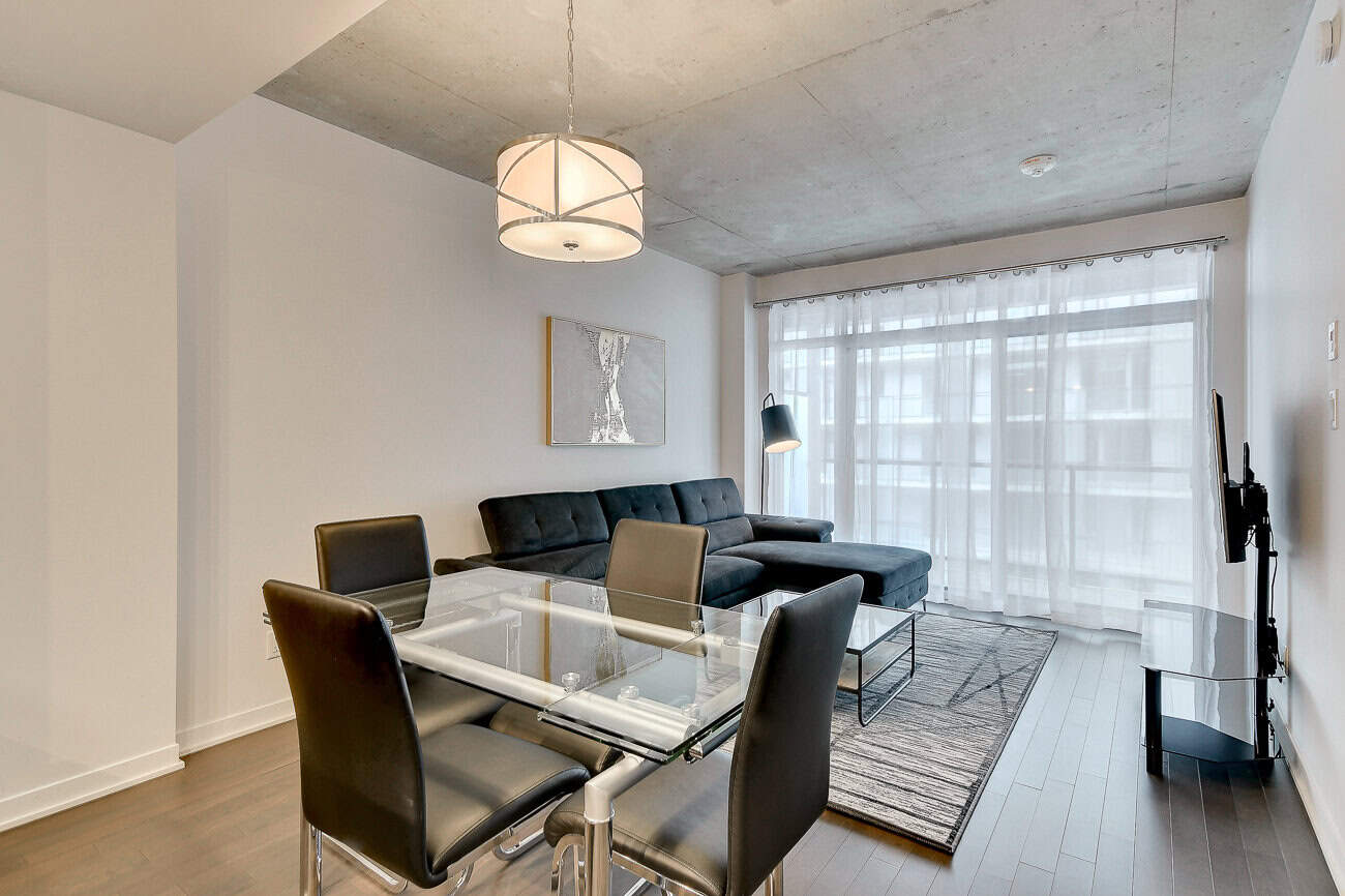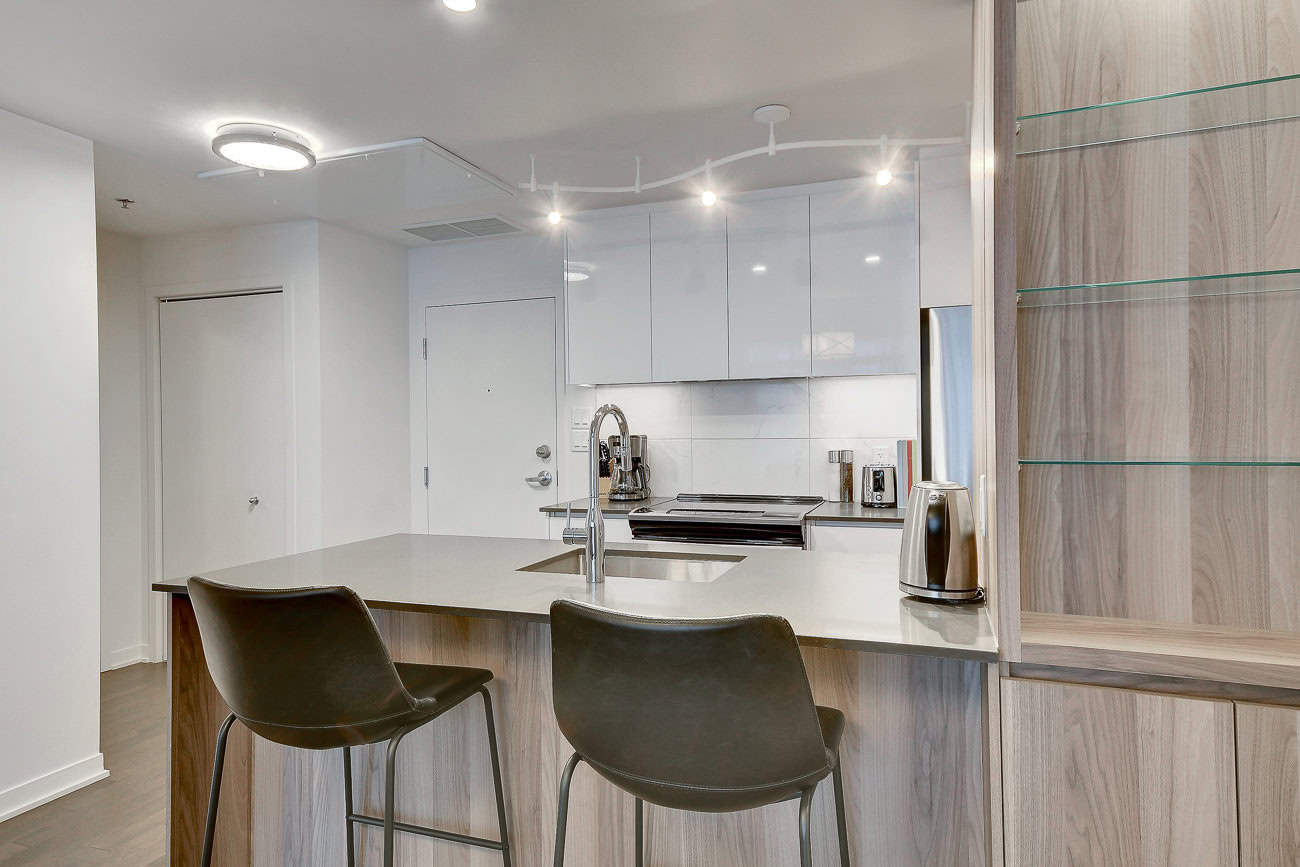 Au condo du Quartier, dès votre arrivée, vous vous sentirez chez vous. Grands espaces, plafonds hauts, lumière naturelle et vue magnifique sur la ville. Profitez également de la cuisine équipée avec comptoir-bar et du balcon privé.