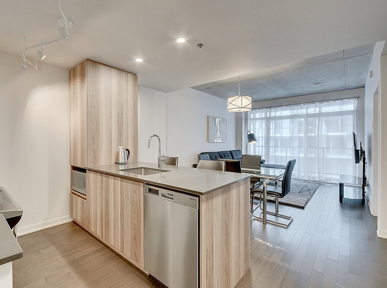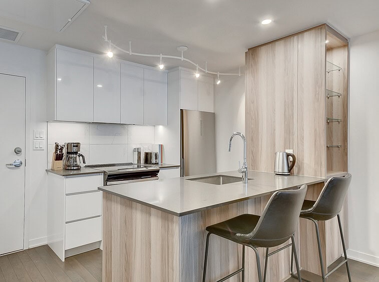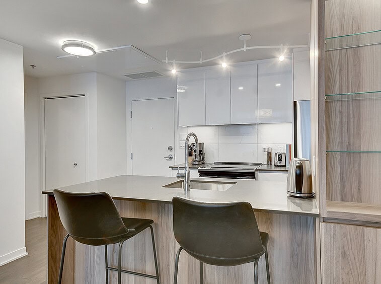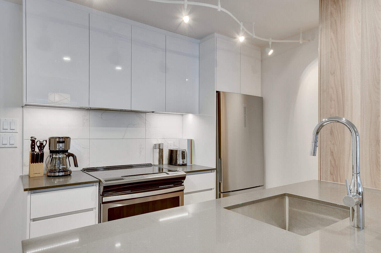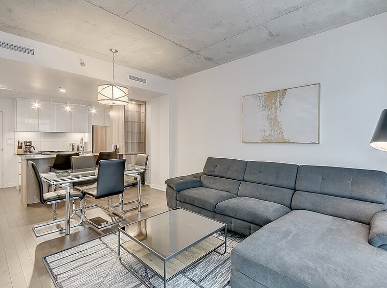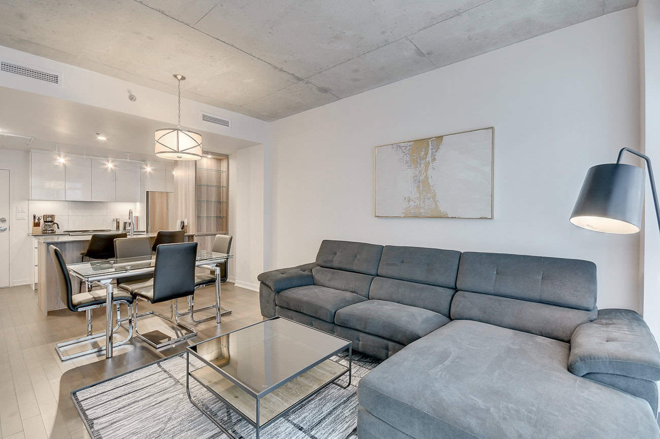Au condo du Quartier, dès votre arrivée, vous vous sentirez chez vous. Grands espaces, plafonds hauts, lumière naturelle et vue magnifique sur la ville. Profitez également de la cuisine équipée avec comptoir-bar et du balcon privé.