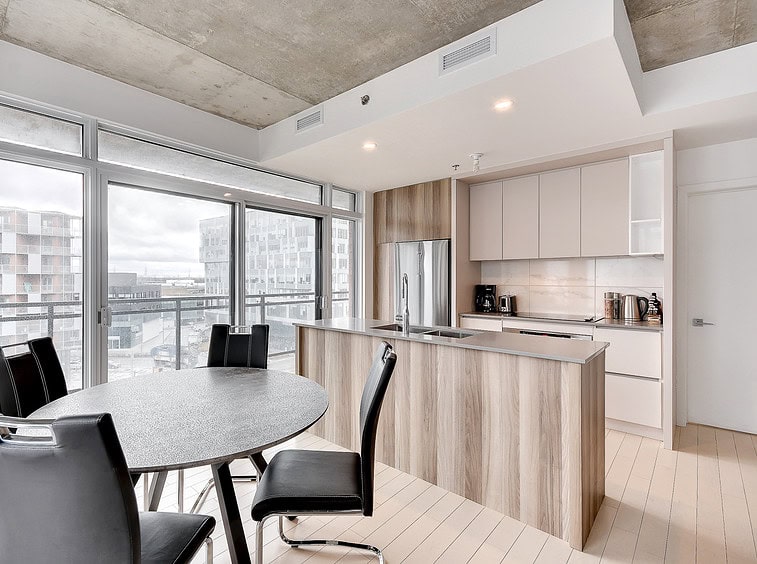 Au condo du Quartier, dès votre arrivée, vous vous sentirez chez vous. Grands espaces, plafonds hauts, lumière naturelle et vue magnifique sur la ville. Profitez également de la cuisine équipée avec comptoir-bar et du balcon privé.
