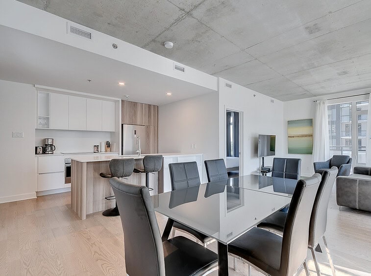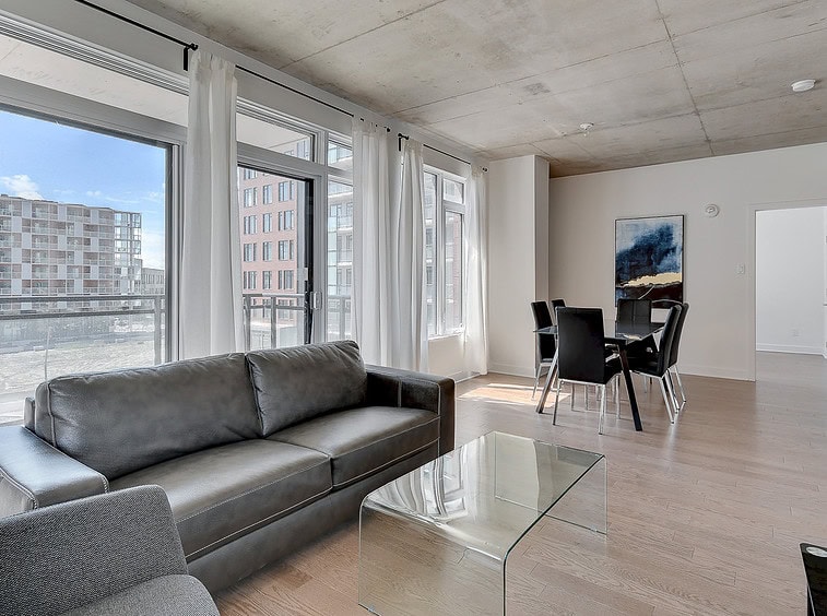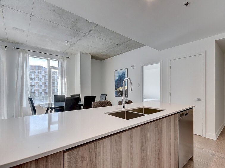 Au condo du Quartier, dès votre arrivée, vous vous sentirez chez vous. Grands espaces, plafonds hauts, lumière naturelle et vue magnifique sur la ville. Profitez également de la cuisine équipée avec comptoir-bar et du balcon privé.
