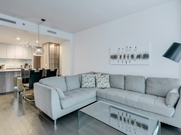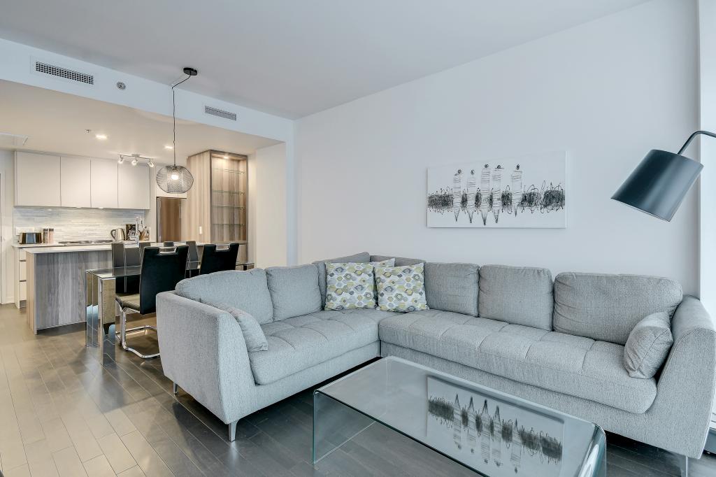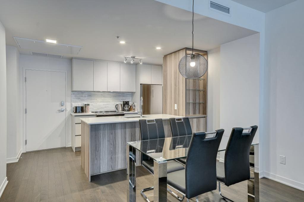 Au condo du Quartier, dès votre arrivée, vous vous sentirez chez vous. Grands espaces, plafonds hauts, lumière naturelle et vue magnifique sur la ville. Profitez également de la cuisine équipée avec comptoir-bar et du balcon privé.