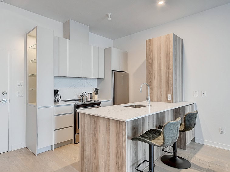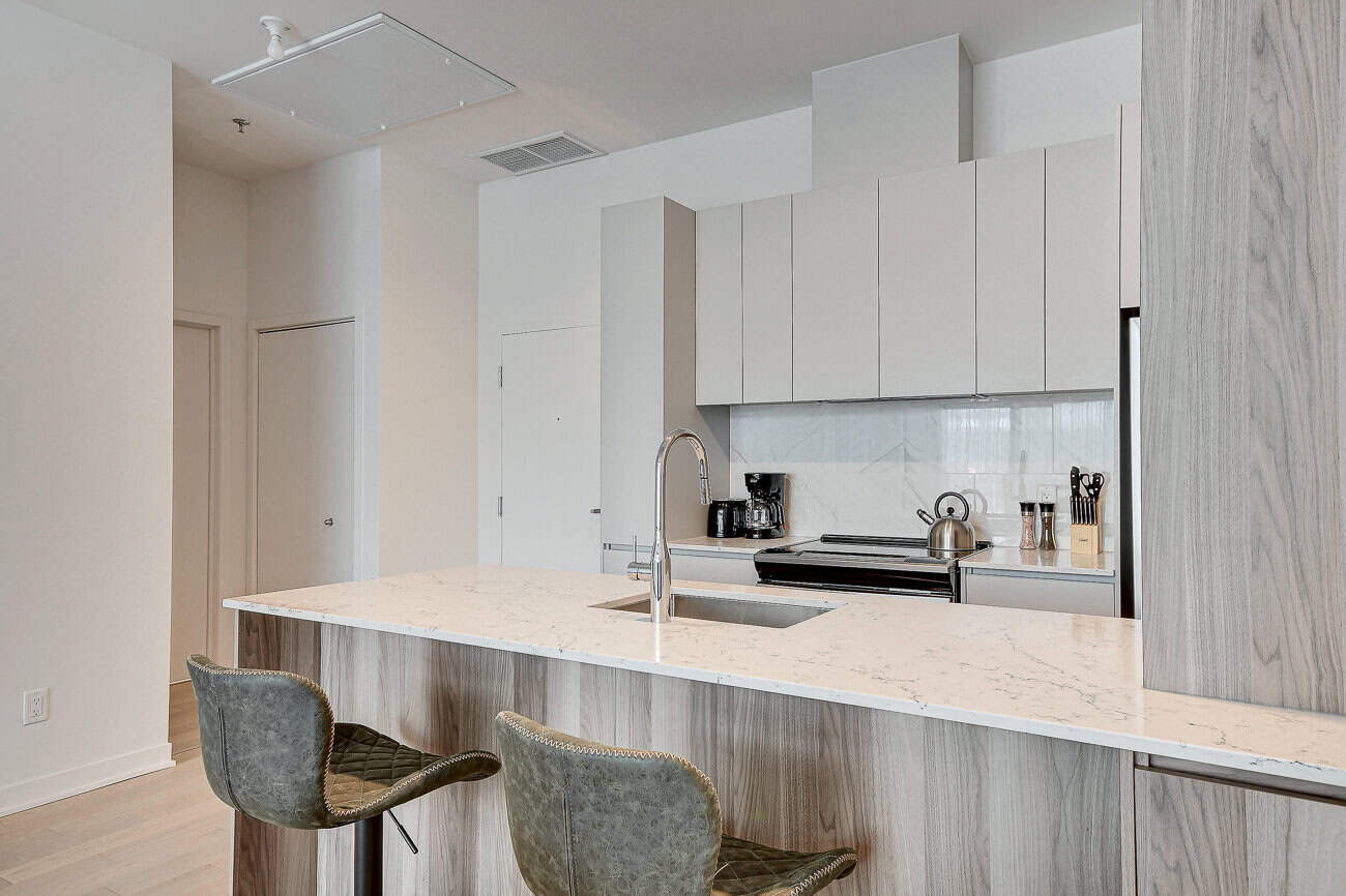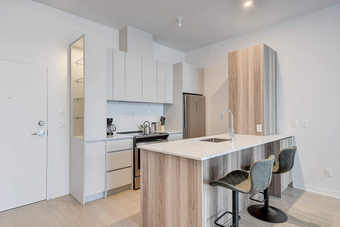 Au condo du Quartier, dès votre arrivée, vous vous sentirez chez vous. Grands espaces, plafonds hauts, lumière naturelle et vue magnifique sur la ville. Profitez également de la cuisine équipée avec comptoir-bar et du balcon privé.