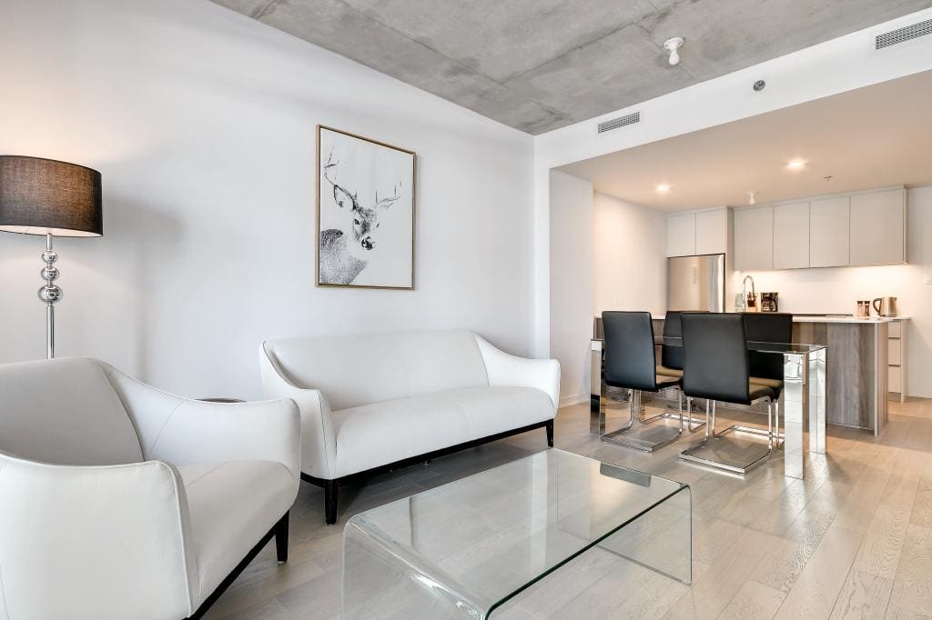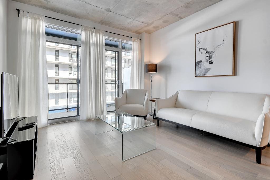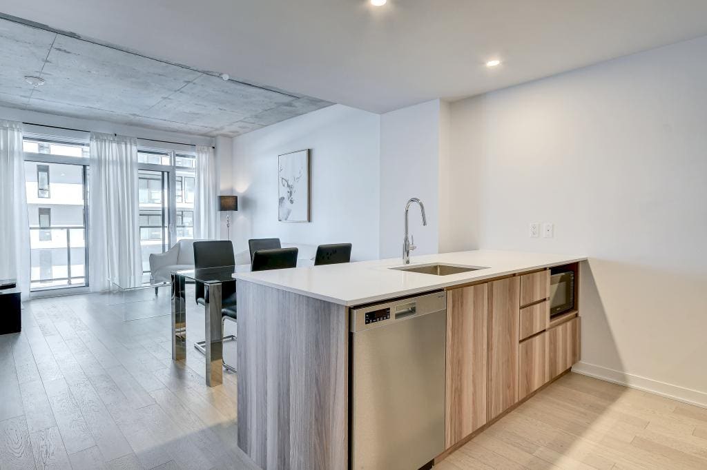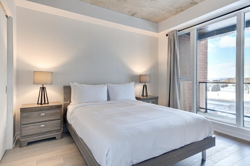 Au condo du Quartier, dès votre arrivée, vous vous sentirez chez vous. Grands espaces, plafonds hauts, lumière naturelle et vue magnifique sur la ville. Profitez également de la cuisine équipée avec comptoir-bar et du balcon privé.