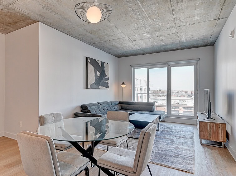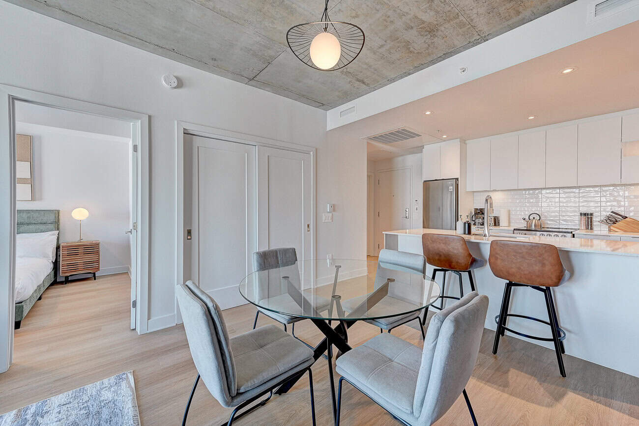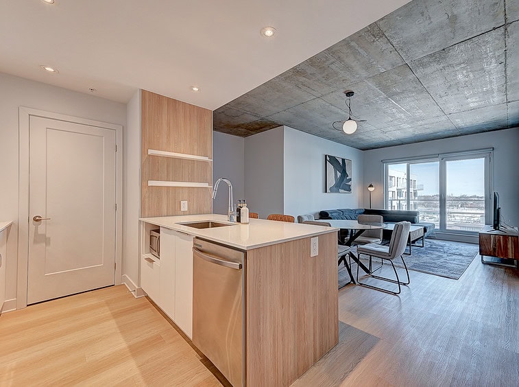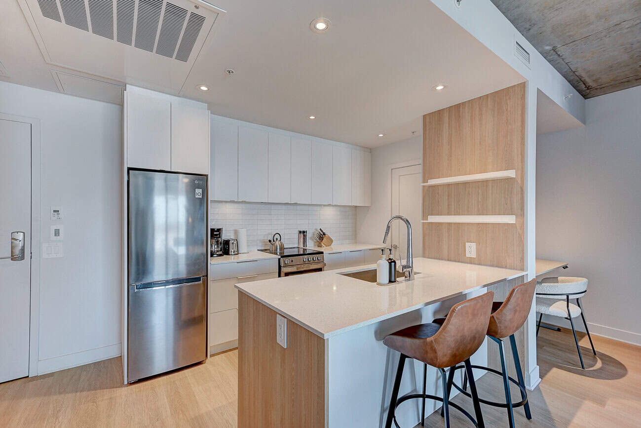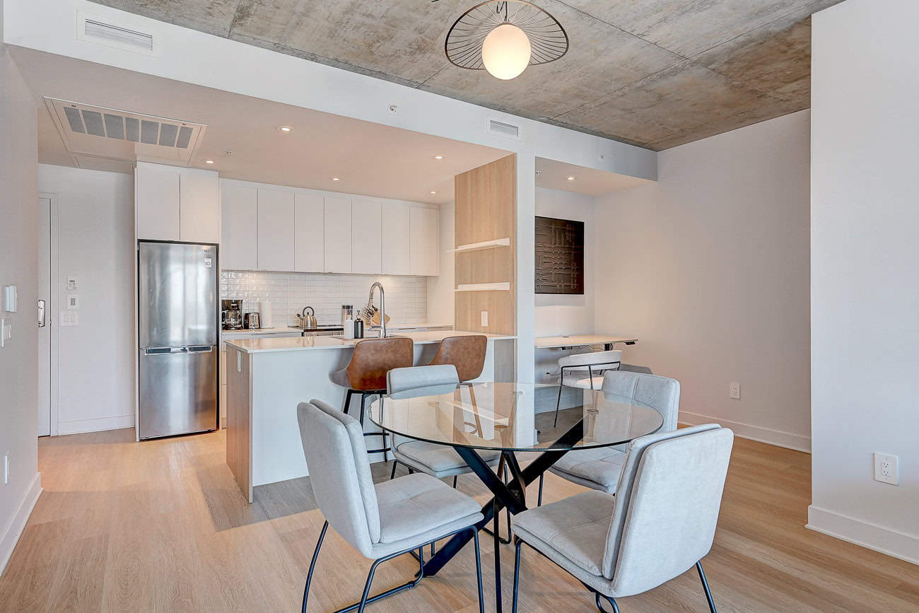 Vous serez séduit par le design contemporain du condo Jarry et ses finitions haut de gamme. Le condo offre également un espace détente sur le toit avec vue panoramique et barbecue.
