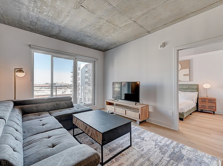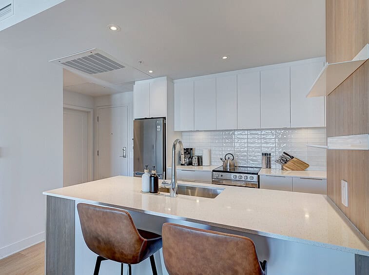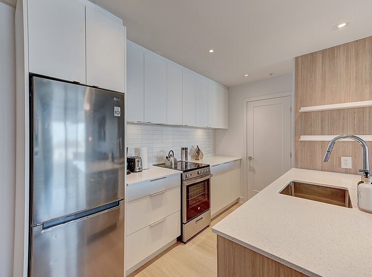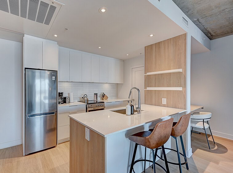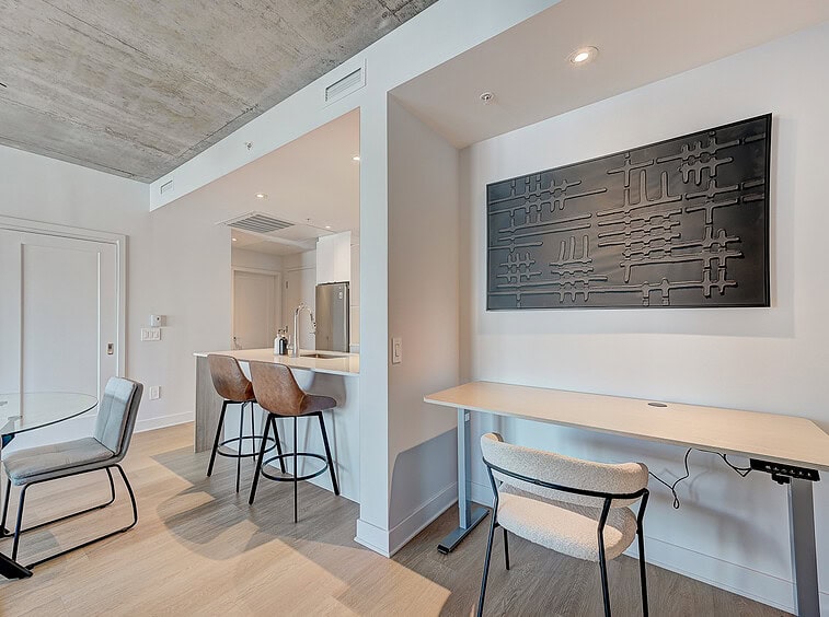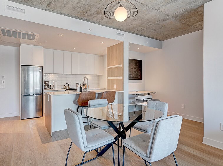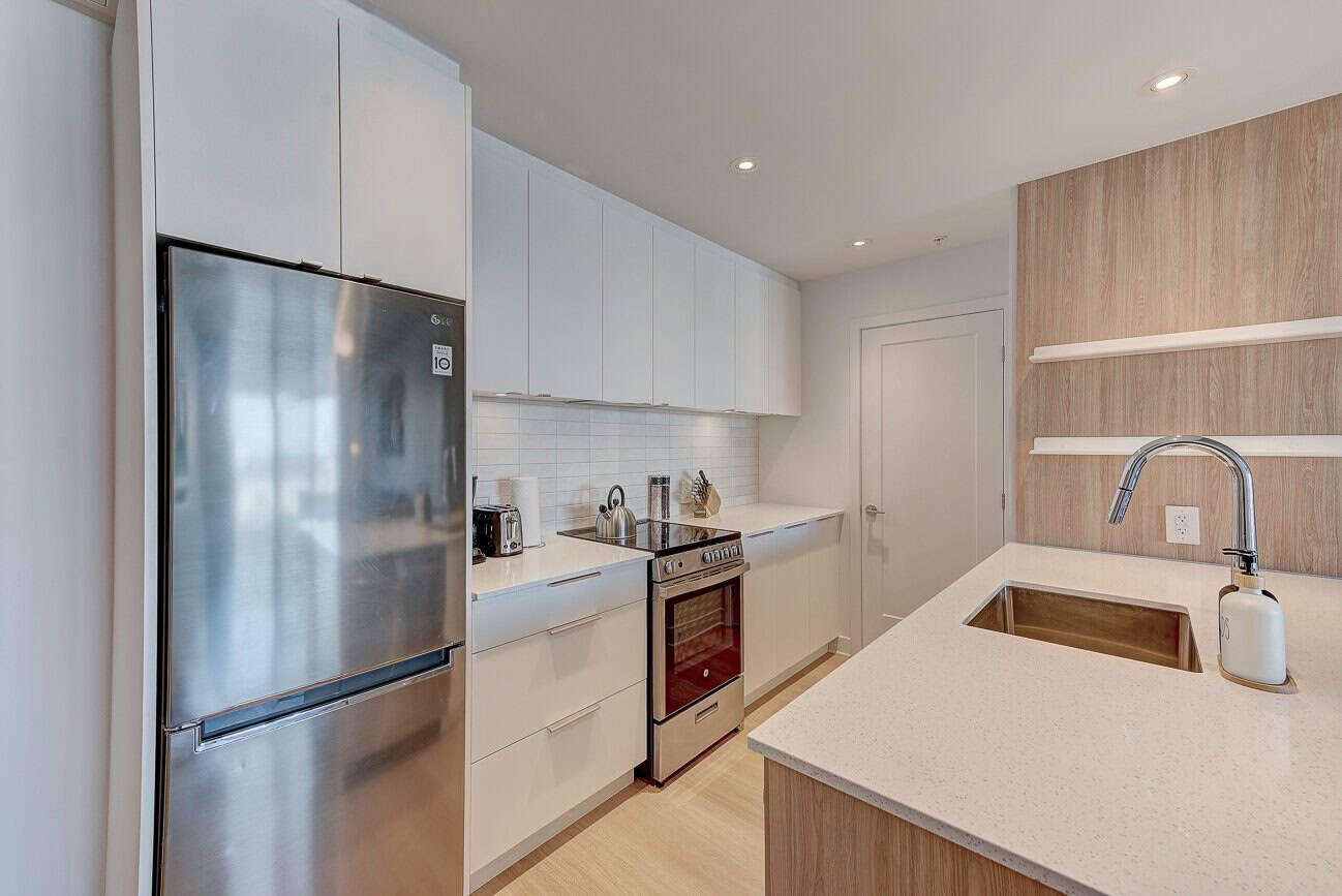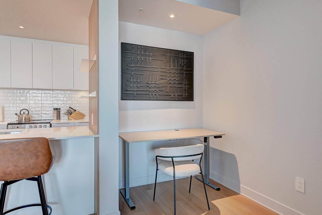 Vous serez séduit par le design contemporain du condo Jarry et ses finitions haut de gamme. Le condo offre également un espace détente sur le toit avec vue panoramique et barbecue.