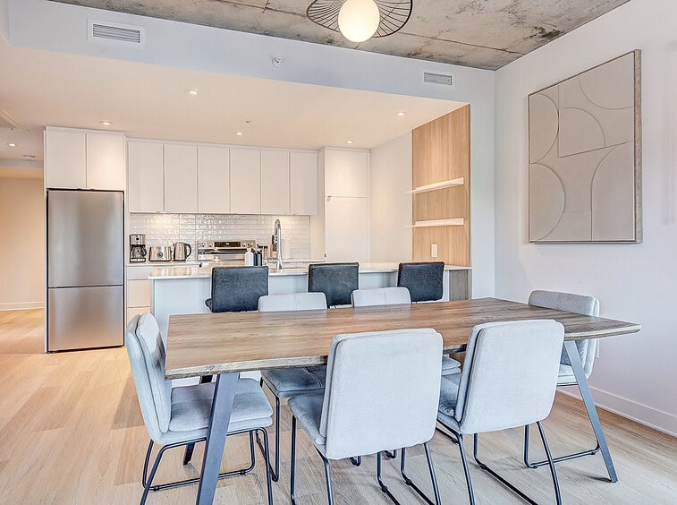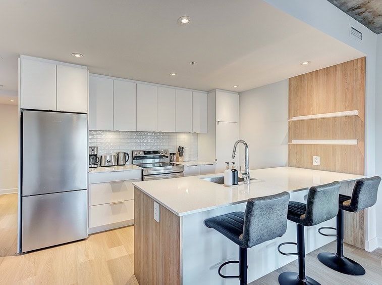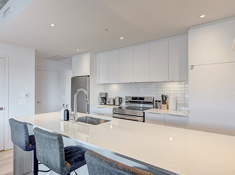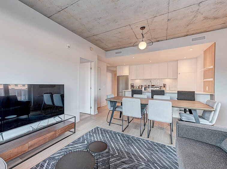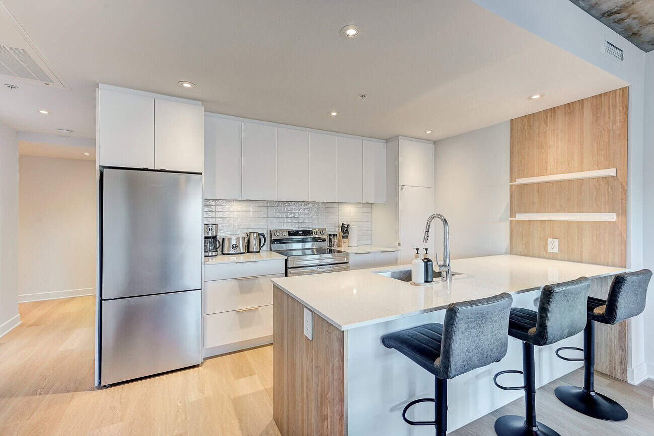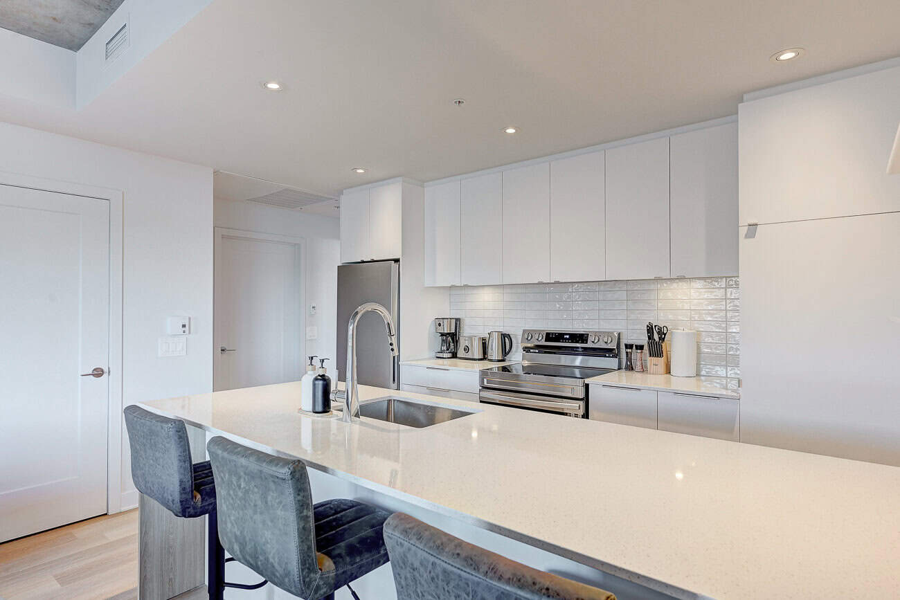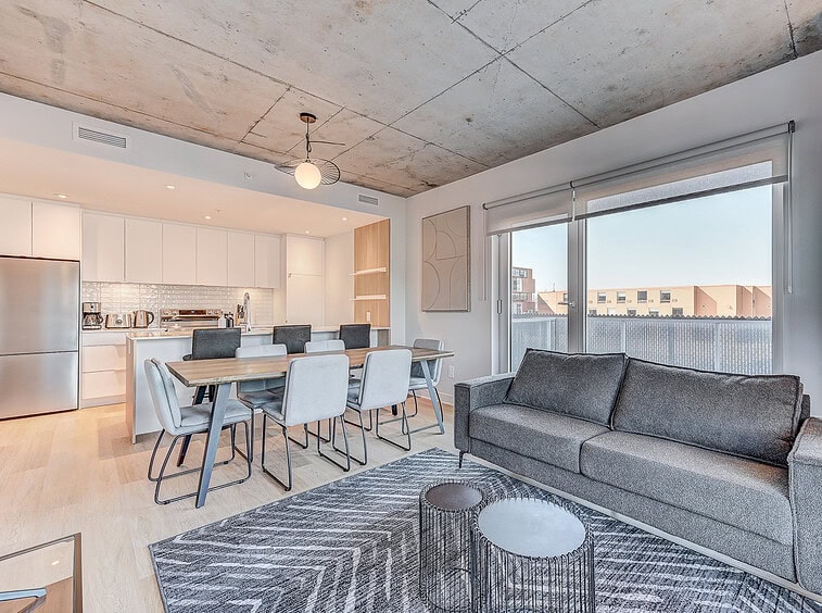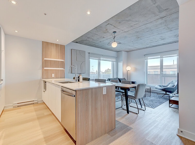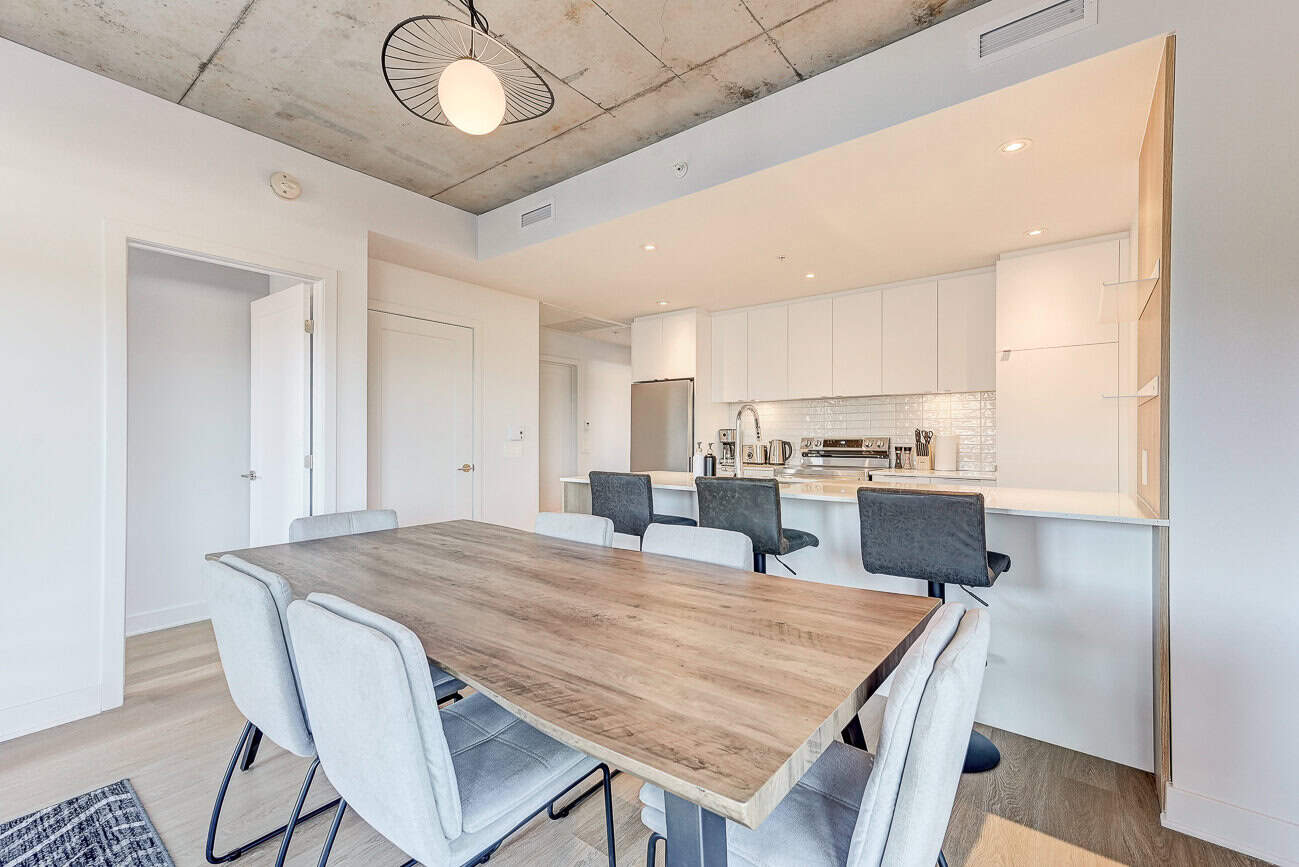 Vous serez séduit par le design contemporain du condo Jarry et ses finitions haut de gamme. Le condo offre également un espace détente sur le toit avec vue panoramique et barbecue.
