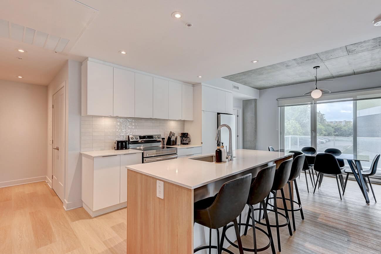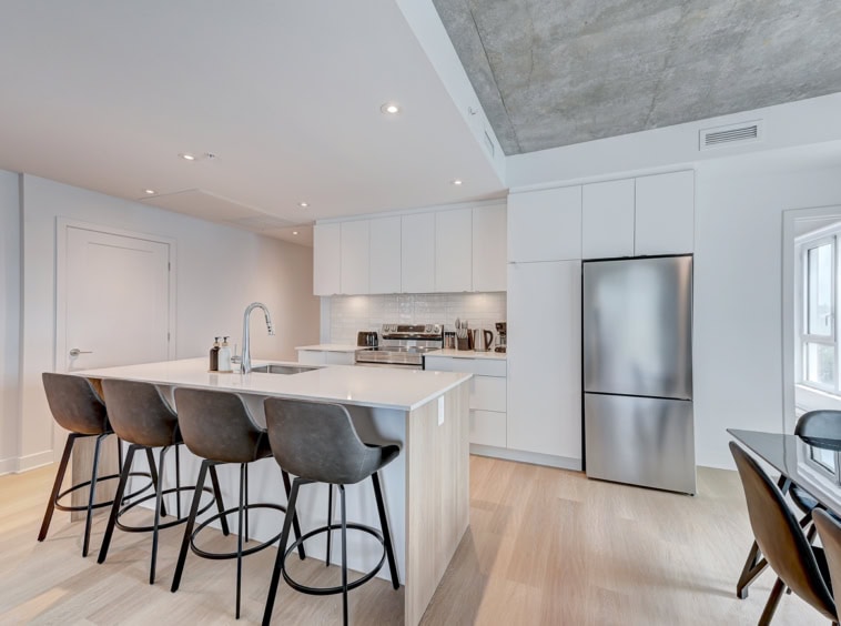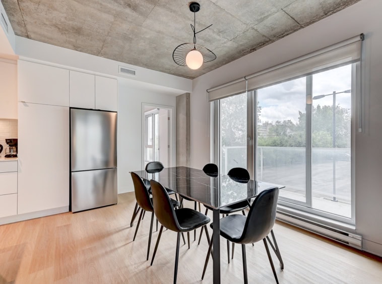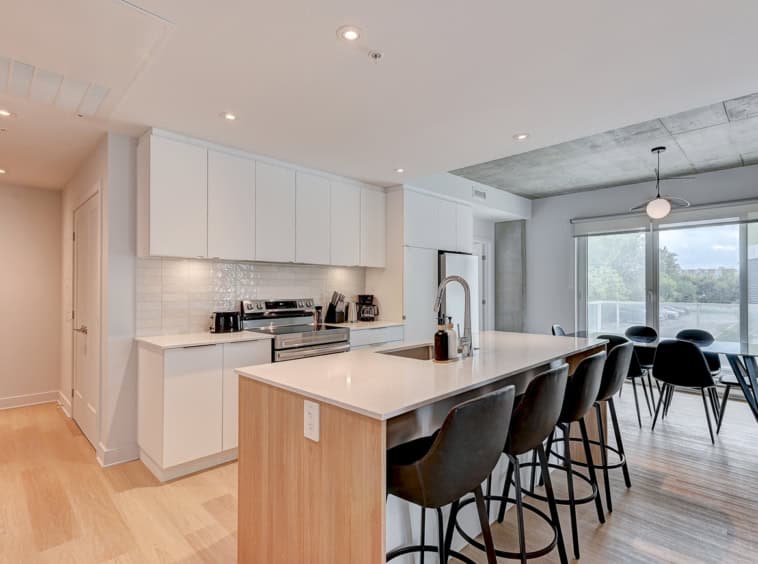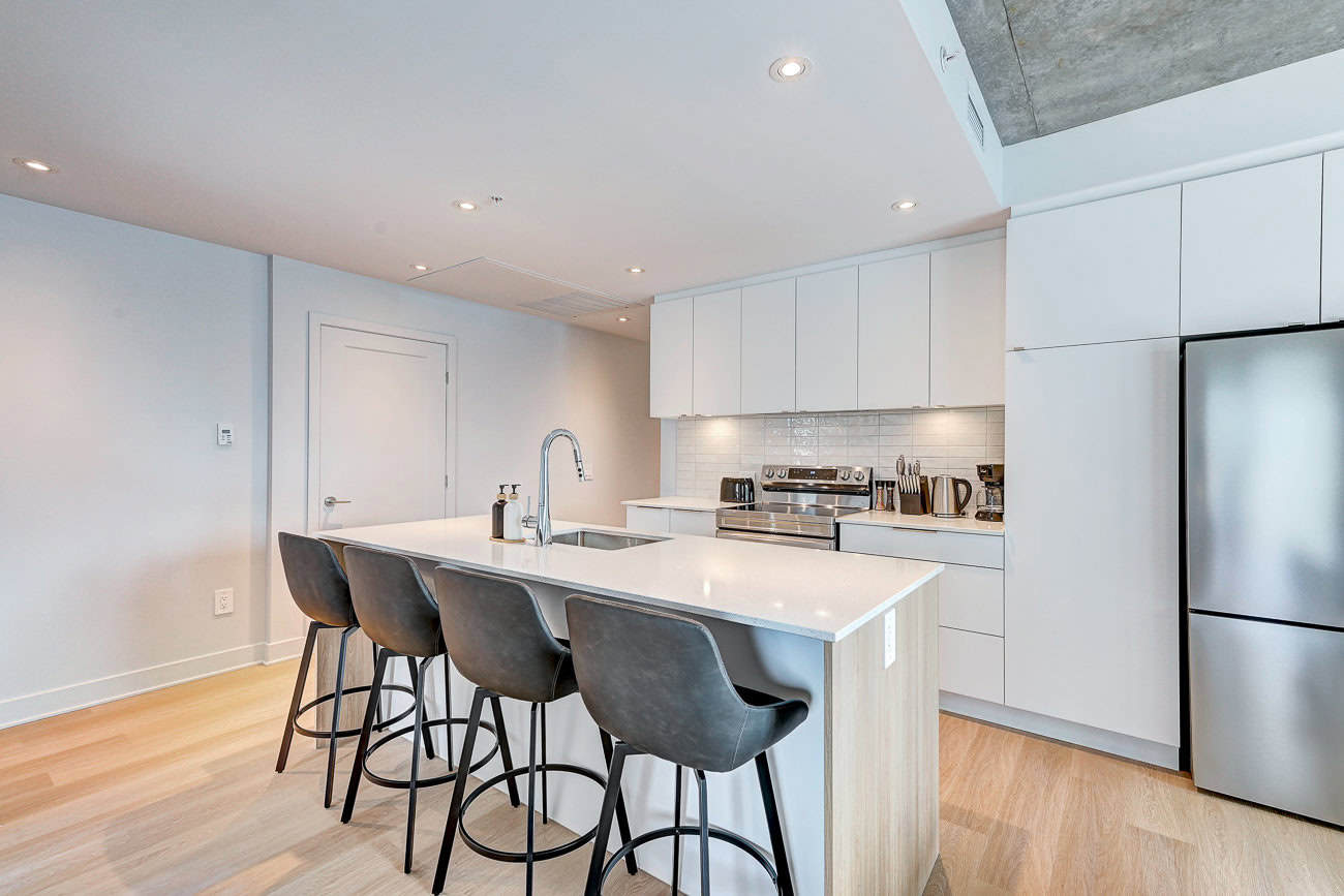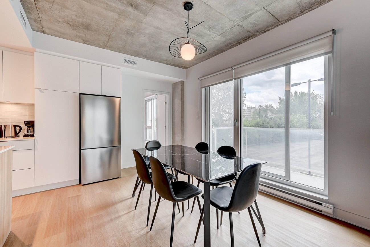 Vous serez séduit par le design contemporain du condo Jarry et ses finitions haut de gamme. Le condo offre également un espace détente sur le toit avec vue panoramique et barbecue.