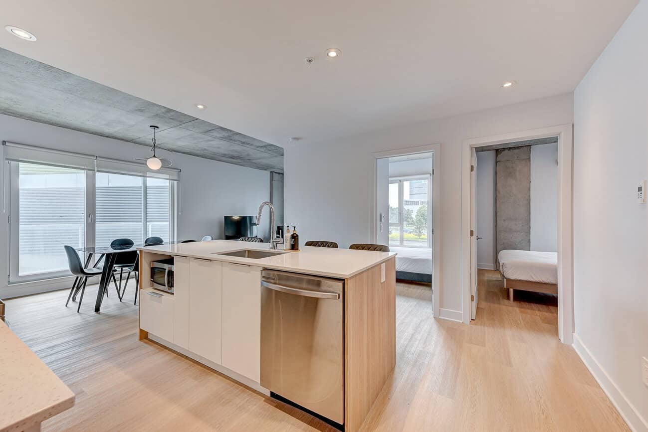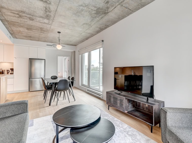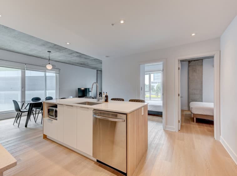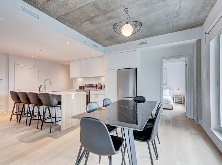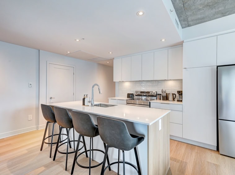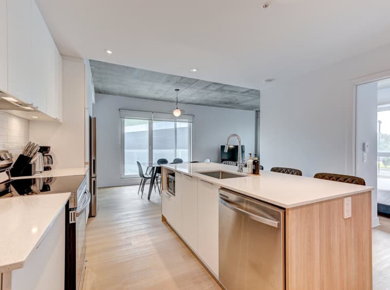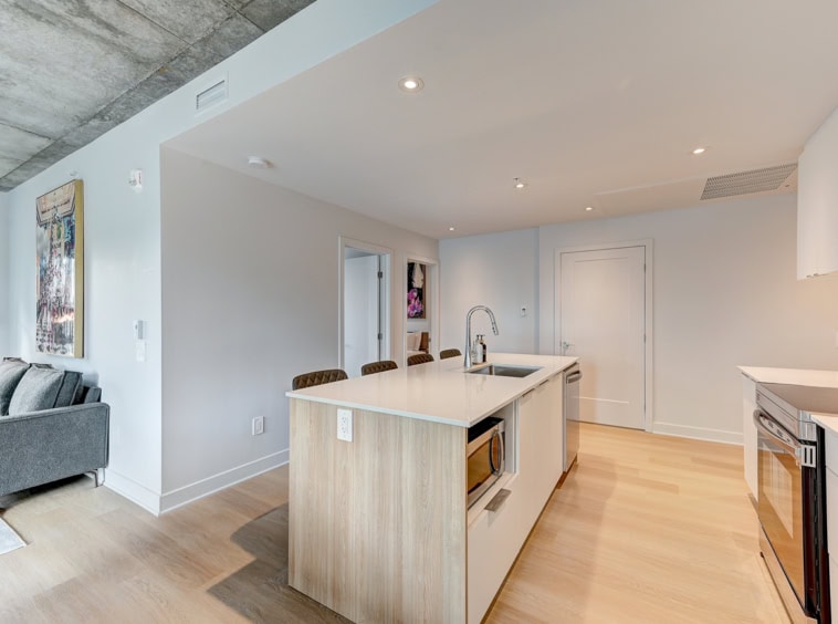 Vous serez séduit par le design contemporain du condo Jarry et ses finitions haut de gamme. Le condo offre également un espace détente sur le toit avec vue panoramique et barbecue.