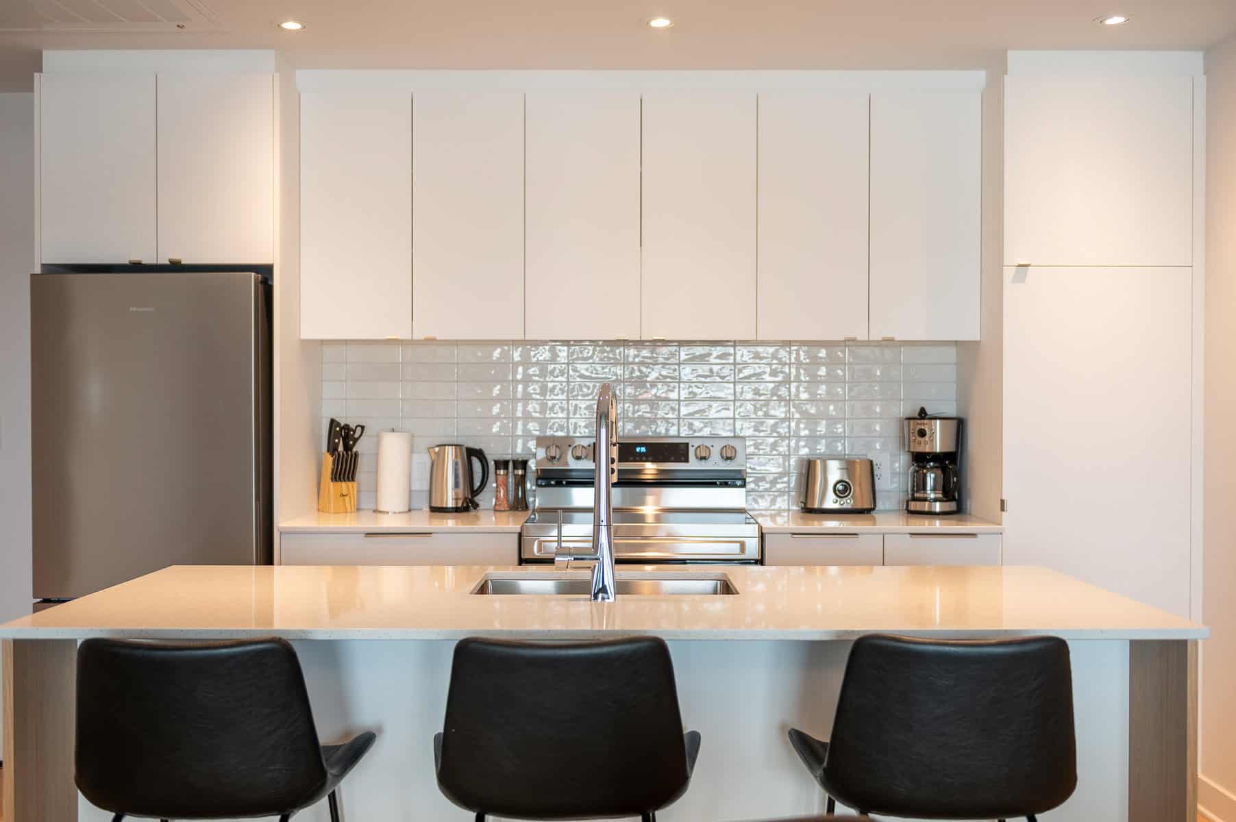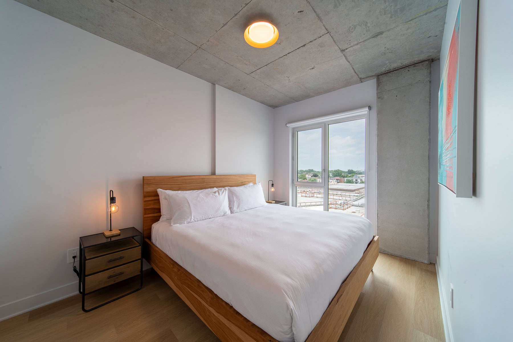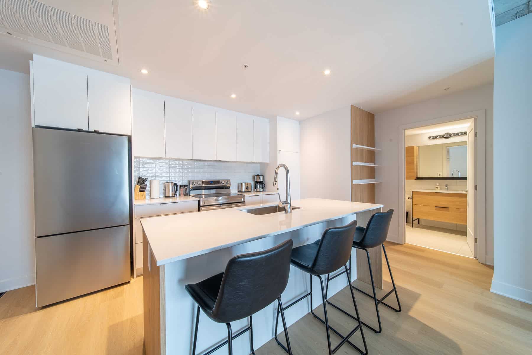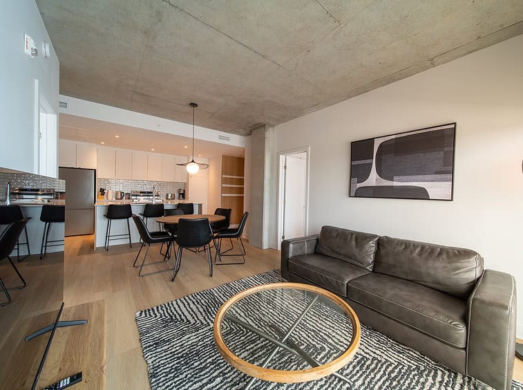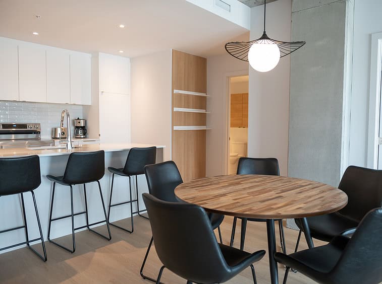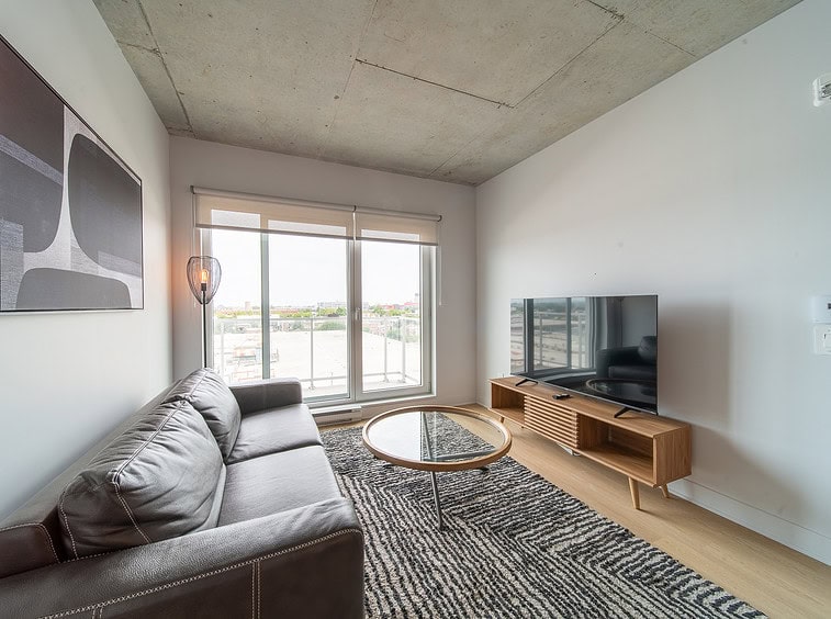 Vous serez séduit par le design contemporain du condo Jarry et ses finitions haut de gamme. Le condo offre également un espace détente sur le toit avec vue panoramique et barbecue.