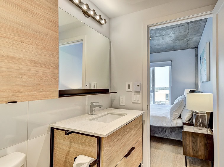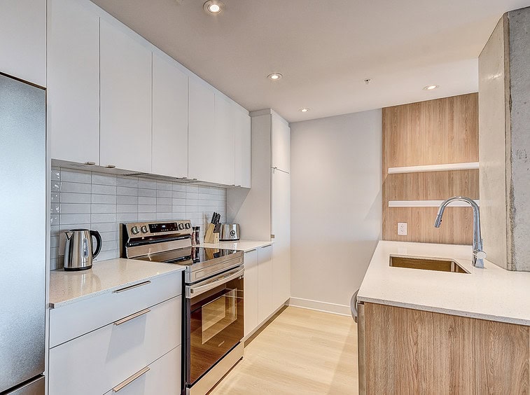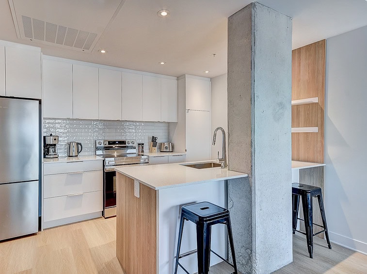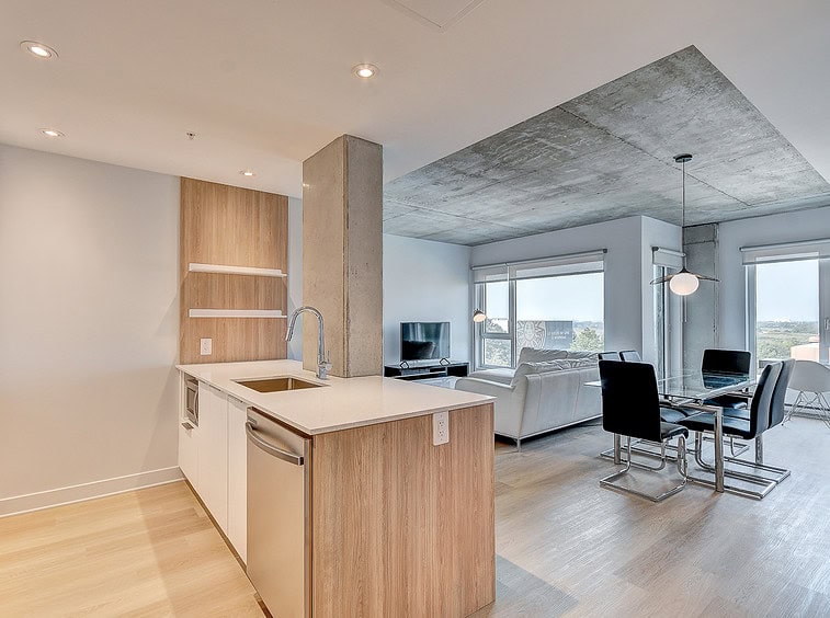 Vous serez séduit par le design contemporain du condo Jarry et ses finitions haut de gamme. Le condo offre également un espace détente sur le toit avec vue panoramique et barbecue.