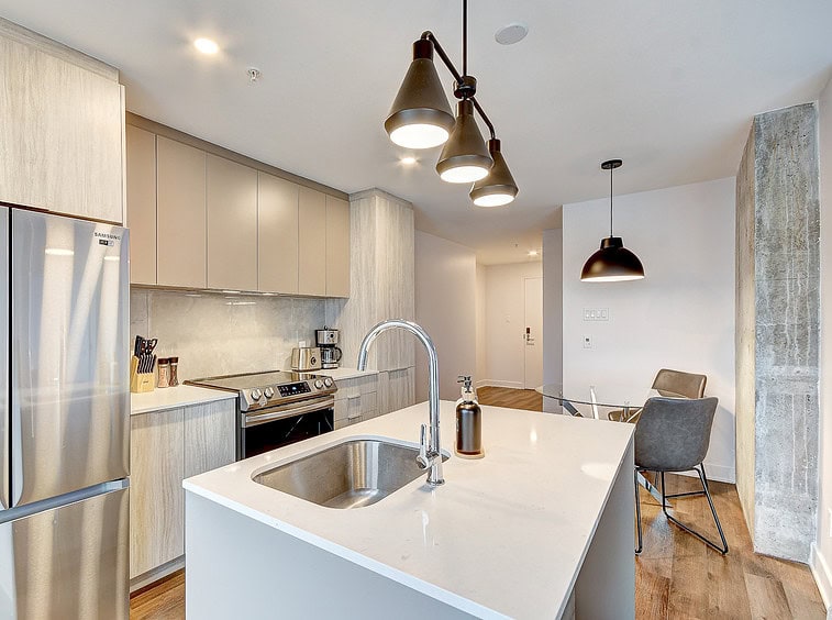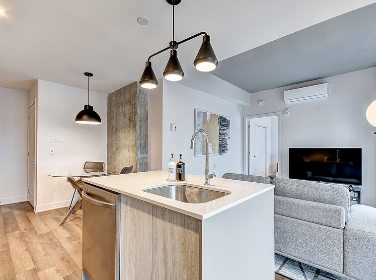 Dès votre arrivée au Labelle, vous vous sentirez comme chez vous. Le confort est au rendez-vous avec des espaces de vie ouverts et une lumière naturelle abondante. Profitez de la vue sur la ville depuis votre cuisine avec îlot central