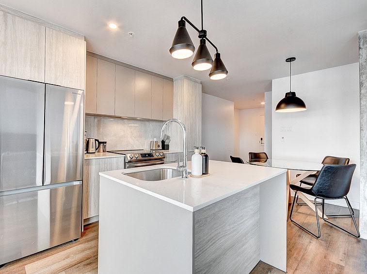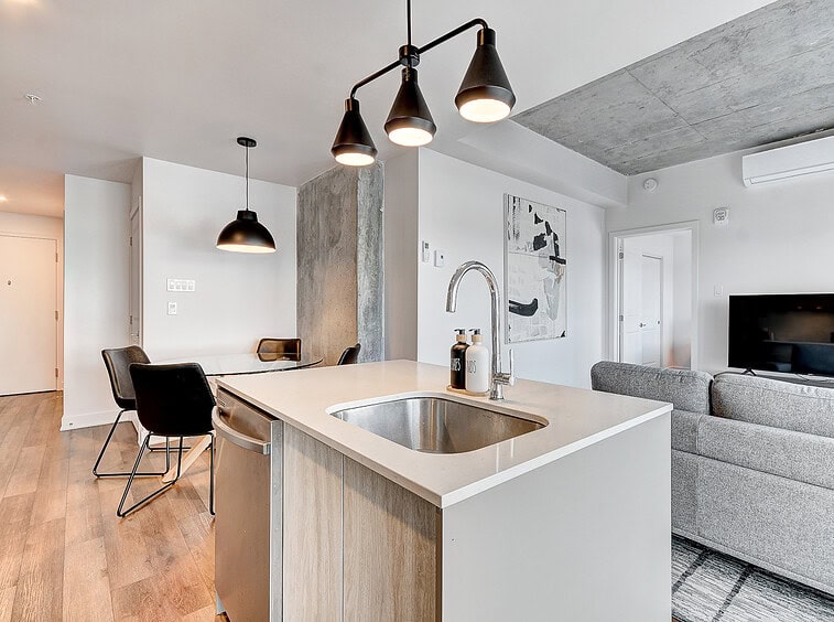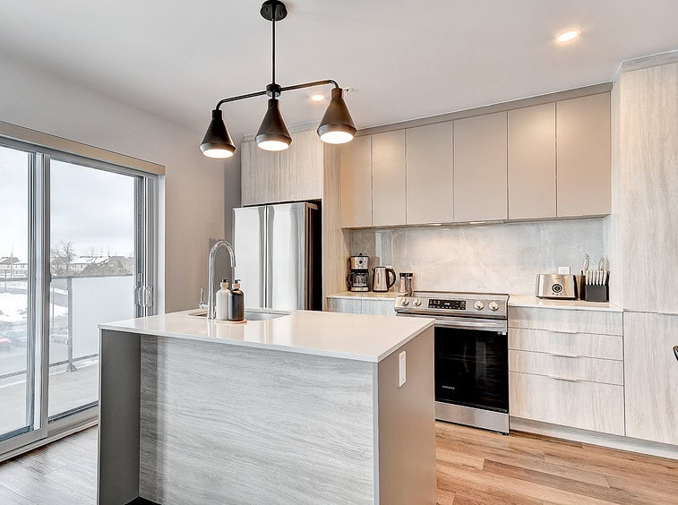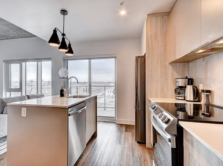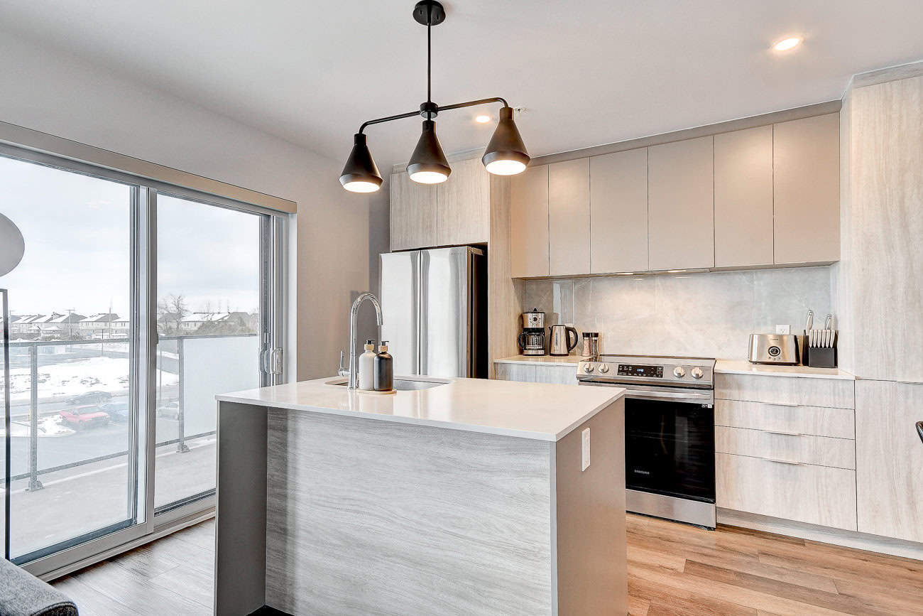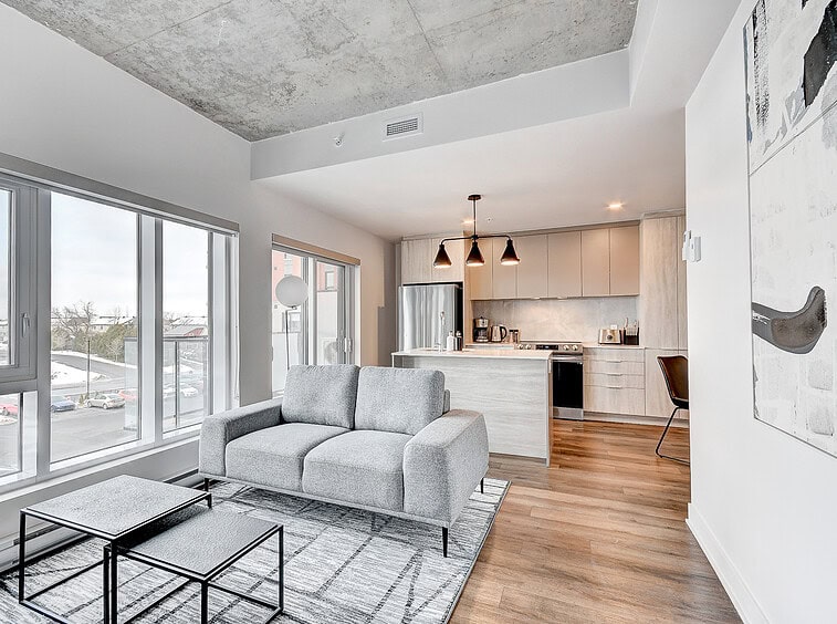 Dès votre arrivée au Labelle, vous vous sentirez comme chez vous. Le confort est au rendez-vous avec des espaces de vie ouverts et une lumière naturelle abondante. Profitez de la vue sur la ville depuis votre cuisine avec îlot central