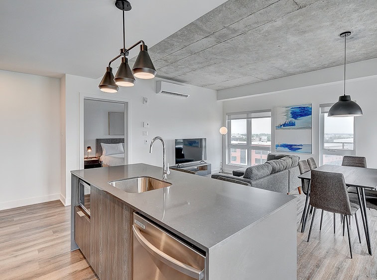Dès votre arrivée au Labelle, vous vous sentirez comme chez vous. Le confort est au rendez-vous avec des espaces de vie ouverts et une lumière naturelle abondante. Profitez de la vue sur la ville depuis votre cuisine avec îlot central