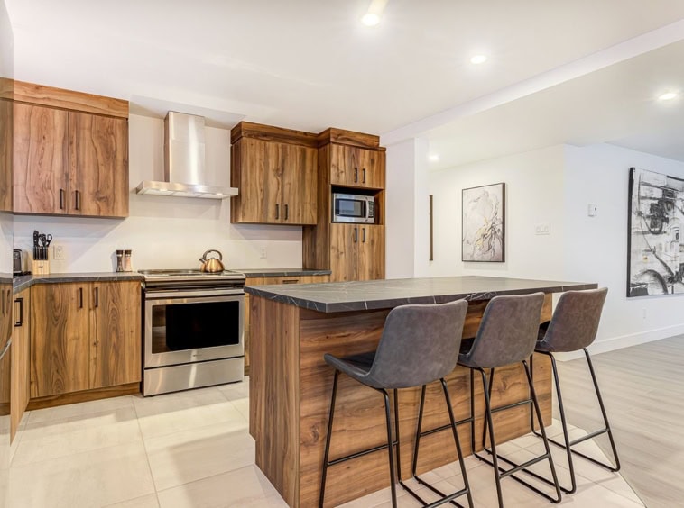 Dès votre arrivé au condo Le Brave, vous sentirez que vous êtes dans votre chez-vous. Vous y serez confortable et vous serez impressionné par la qualité de l’ameublement et des équipements. La cuisine spacieuse est pourvue d’un îlot central.
